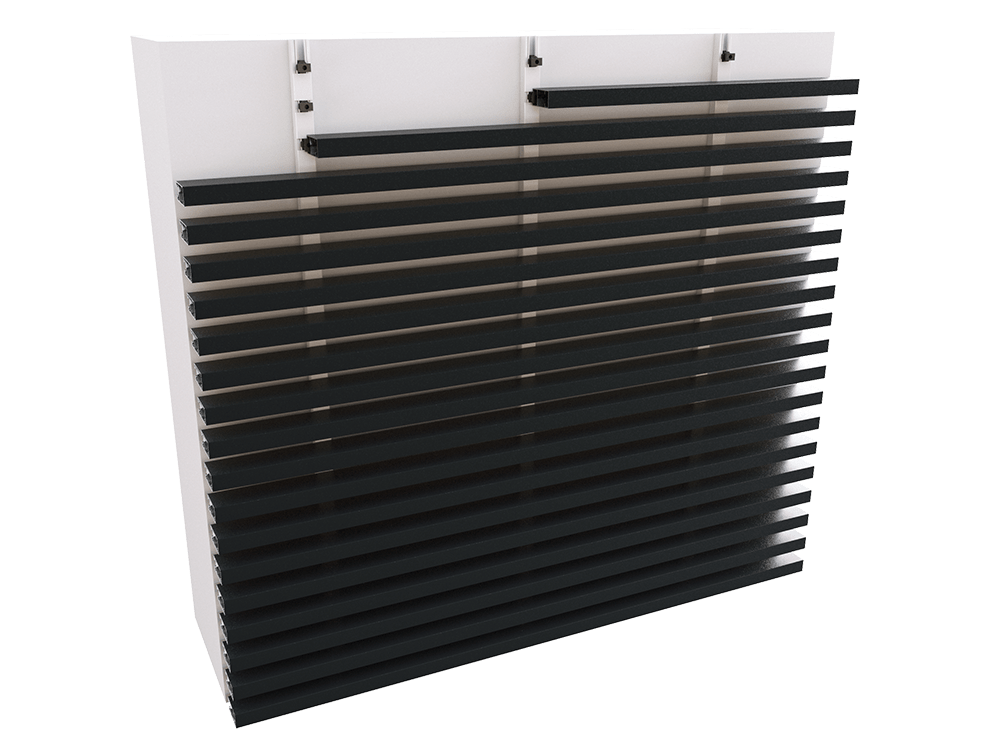 Um sistema de barras de encaixe com suportes de aço inoxidável é então instalado na parede. As ripas de alumínio são então aplicadas no perfil de ancoragem. Para paredes muito altas, são utilizadas juntas para unir duas ou mais ripas. A junta garante uma ancoragem segura e isolada, com tampas de alumínio da mesma cor.