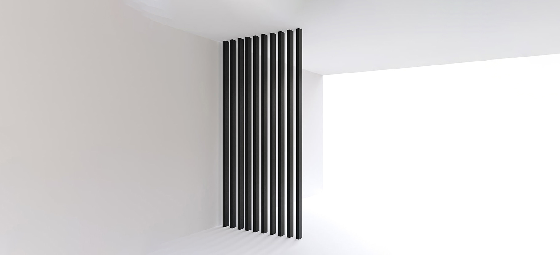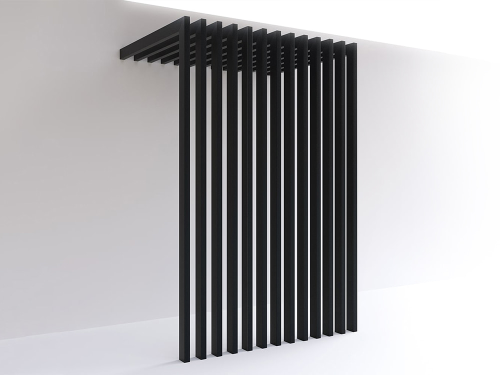 O sistema de revestimento BATTENS 50 é perfeitamente adequado para criar divisórias conceituais: uma solução versátil para designers. Ele fornece personalidade e movimento. Ele é encaixado no piso e no teto com um sistema sólido e invisível, que realça as linhas mínimalistas do BATTENS 50.