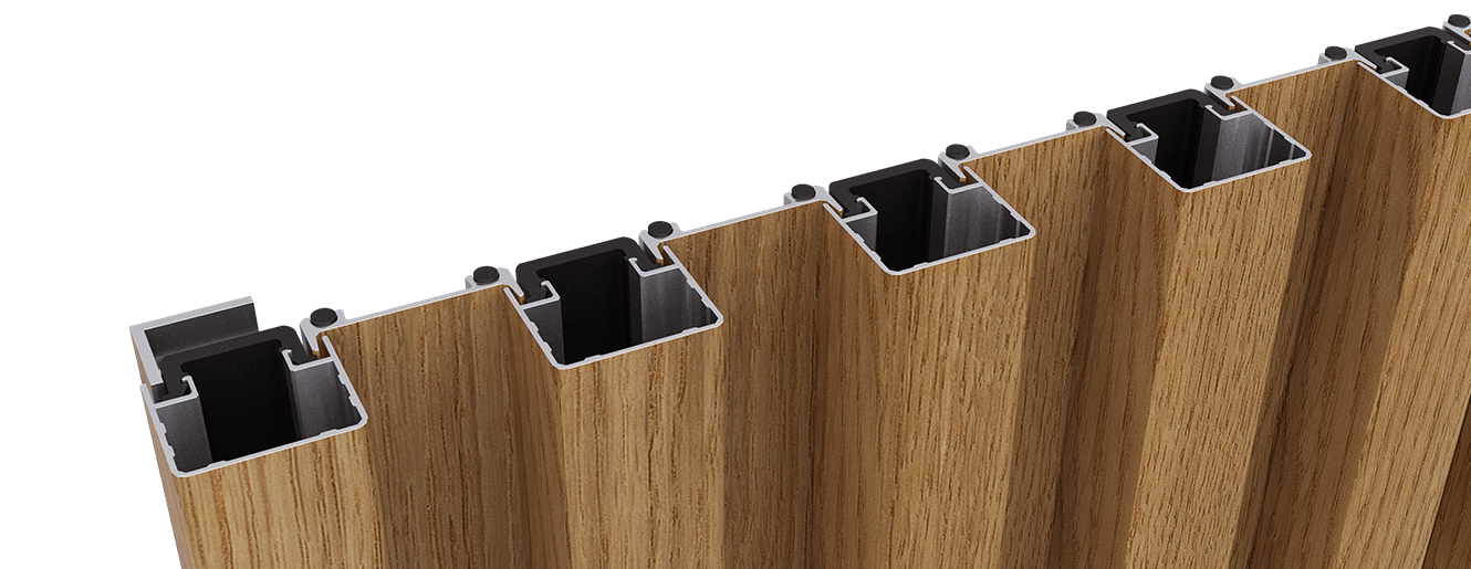 O sistema BATTENS LIGHT é encaixado na parede com o uso de uma subestrutura e clips de nylon. Os clipes são girados nas barras de encaixe da parede e as ripas são encaixadas firmemente nos clipes. O sistema de engate é mecânico e resistente e, portanto, permite uma instalação rápida e a possibilidade de remover os elementos, se necessário.